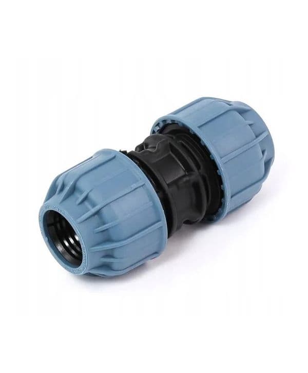 Dwu-złącze PE 25-25 PN16 pozwala w łatwy sposób przedłużać lub naprawiać uszkodzone rurociągi w systemach nawadniania, a także w wysokociśnieniowych instalacjach wodnych, dzięki wytrzymałości do 16 Bar. Aby złączka skręcana zachowała szczelność i parametry pracy należy uprzednio przygotować rurę PE. Do jej przycinania należy używać specjalnych nożyc pozwalających zachować gładkie krawędzie i odpowiedni kształt podczas cięcia. Wprowadzając rurę do złączki należy upewnić się, że posiada okrągły (nie owalny!) kształt, jest ucięta pod kątem prostym i posiada łagodnie zakończone krawędzie, które nie uszkodzą wewnętrznego o-ringu.