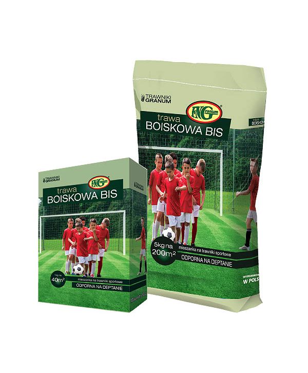 Charakterystyczną cechą mieszanki BOISKOWEJ BIS jest zastosowanie w jej składzie kostrzewy trzcinowej. Gatunek ten odznacza się dużą tolerancją na niekorzystne warunki glebowe, odpornością na suszę oraz wysoką mrozoodpornością. Kostrzewa trzcinowa posiada silny i głęboki system korzeniowy, co wyróżnia ją spośród innych traw. W połączeniu z pozostałymi składnikami mieszanki tworzy silną, zwartą ciemnozieloną darń. Z powodzeniem może być użyta do obsiewu boisk, placów zabaw, trawników narażonych na uszkodzenia mechaniczne.