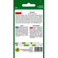 Odmiana plenna, liście duże, barwy zielonej. Może pozostawać na jednym miejscu 3-4 lata. Jest dobrym źródłem żelaza i wielu witamin. Liczba nasion: 1300-1500 szt. w gramie Norma wysiewu: 3-4 kg/ha Termin wysiewu: 2 dekada IV-3 dekada VIII Rozstawa: 5x30 cm Wegetacja: 3-4 lata Termin zbioru: 1 dekada V-2 dekada X Opakowanie 3g