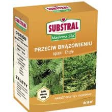 Nawóz Substral Magiczna Siła. Specjalistyczny nawóz interwencyjny przeciw brązowieniu igieł. Wpływa na piękne wybarwienie igieł. Efekty zastosowania widoczne w krótkim czasie. Wysoko skoncentrowany nawóz, dlatego wystarczy niewielka dawka. Bardzo dobrze przyswajany przez liście i korzenie. 100% rozpuszczalny w wodzie. Prosty w stosowaniu – łączy podlewanie z nawożeniem. Wysoka wydajność - dawka 1g na litr wody.