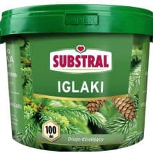 Nawóz Substral 100 dni. Nawóz długo działający do iglaków i roślin kwaśnolubnych – działa 3 razy dłużej i wydajniej niż zwykły granulat. Odżywia roślinę codziennie przez 100 dni, wystarczy więc jedno - dwa nawożenia na sezon. Bez ryzyka przenawożenia. Bogaty w mikroelementy. Duża wydajność – 70% nawozu jest pobierana przez roślinę.