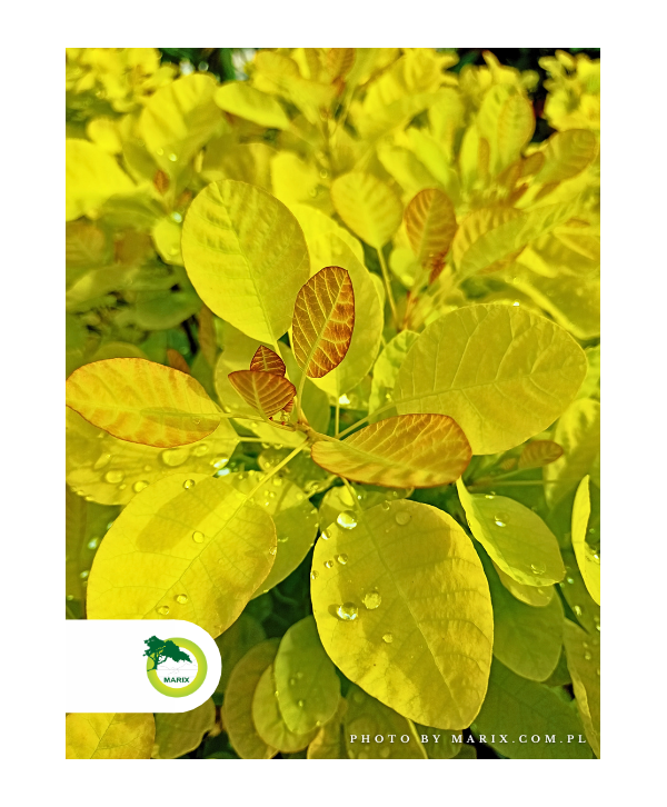 Duży krzew dorastający do 2-3 m wysokości. To nowa odmiana o złotożółtym ulistnieniu z pomarańczowymi przyrostami. Jesienią liście przebarwiają się na jasny, pomarańczowy kolor. Istotną cechą rośliny jest jej odporność na promienie słoneczne dzięki czemu liście zachowują zdrowy wygląd nawet w silnie nasłonecznionym stanowisku. Małe kwiaty kwitną w lipcu, następnie owocostany zebrane razem tworzą puszysty kwiatostan – wiechę. Dobrze rośnie na glebach lekkich, przepuszczalnych umiarkowanie wilgotnych. Stanowisko słoneczne.
