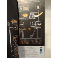 Fiskars Sekator uniwersalny żyrafa UPX82 posiada obrotową głowicę oraz poprowadzoną wewnątrz urządzenia taśmę transmisyjną, która nie wymaga regulacji.