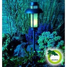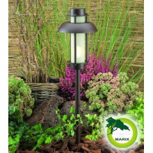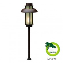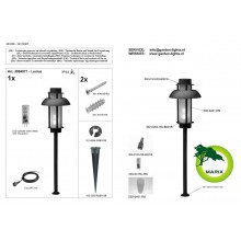 Lampa stojąca wykonana z aluminium malowanego proszkowo. Klosz wykonany ze matowego szkła hartowanego powoduje sferyczne rozchodzenie światła. Razem z lampą jest w zestawie stopka z kołeczkami i wkrętami a także grot do mocowania lampy w ziemi. Na innych aukcjach dostępne są akcesoria do podłączenia i zasilania lamp (transformator, przewody, rozgałęziacz)