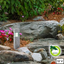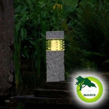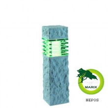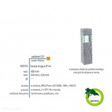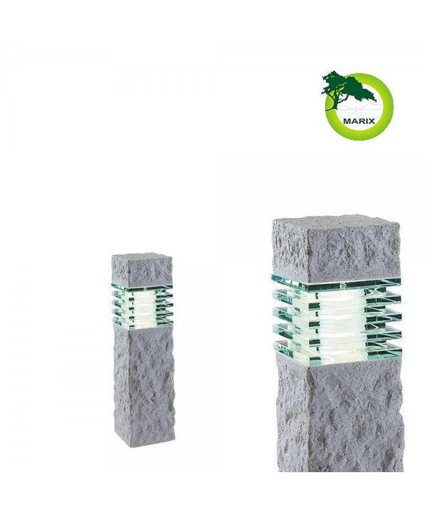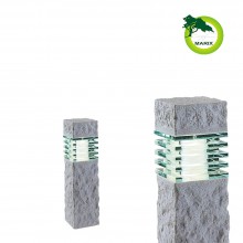 Lampa stojąca wykonana jest z żywicy polimerowej imitującej wyglądem i wagą prawdziwy kamień. Oprawa w preciwieństwie do prawdziwego kamienia nie nasiąka wodą, nie porasta mchem, nie pęka na mrozie. Razem z lampą jest w zestawie stopka z kołeczkami i wkrętami a także grot do mocowania lampy w ziemi. W ofercie znajdziesz także tą lampę o wysokości 60cm pod nazwą Titan.