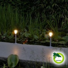 Lampa stojąca wykonana z aluminium malowanego proszkowo na kolor srebrny. Klosz w postaci pierścieni powoduje sferyczne rozchodzenie światła. Razem z lampą jest w zestawie stopka z kołeczkami i wkrętami a także grot do mocowania lampy w ziemi. W ofercie znajdziesz również lampę z pierścieniami szklanymi o nazwie Vitex.
