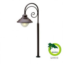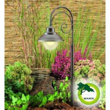 Lampa stojąca o klasycznym kształcie ze zwisającym kloszem. Wykonana z aluminium malowanego proszkowo na kolor brązowy. Źródłem światła jest energooszczędny LED cylindryczny Gu5,3 dający ciepłe światło. Razem z lampą w komplecie są materiały montażowe w postaci stopki, kołeczków i wkrętów do twardego podłoża, a także grot do wbijania w ziemię. W ofercie również kinkiet Lumo.