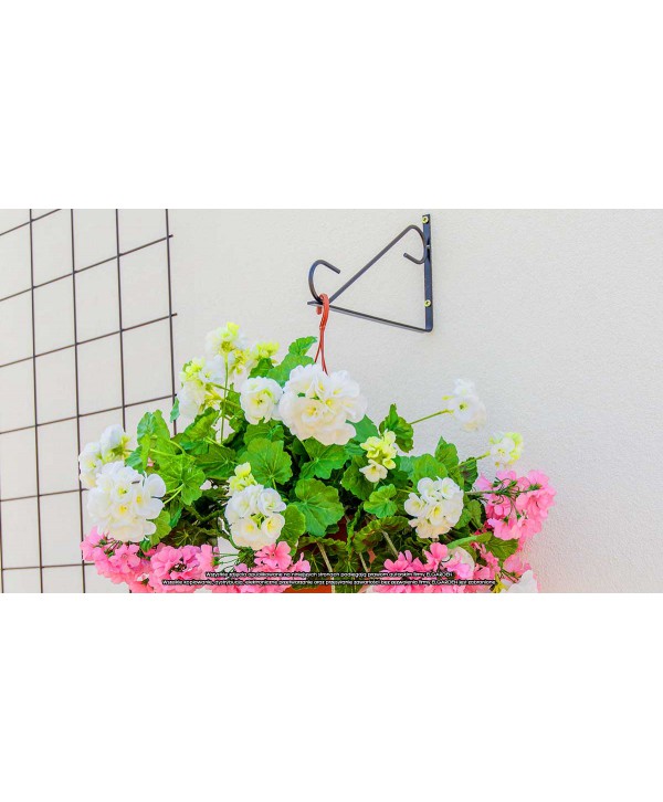 Solidny wieszak do doniczek wiszących lub koszyków z kwiatami. Jest bardzo wytrzymały - można zawiesić na nim nawet najcięższe kosze, a znajdujące się w nich rośliny będą bardzo długo zdobić każde pomieszczenie, balkon czy taras. Wykonany z pręta stalowego i płaskownika w kolorze czarny mat. Łączy w sobie lekkość z walorami nowoczesności.
