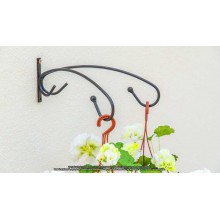 Solidny wieszak do doniczek wiszących lub koszyków z kwiatami. Jest bardzo wytrzymały - można zawiesić na nim nawet najcięższe kosze, a znajdujące się w nich rośliny będą bardzo długo zdobić każde pomieszczenie, balkon czy taras. Wykonany z pręta stalowego i płaskownika w kolorze czarny mat. Łączy w sobie lekkość z walorami nowoczesności.